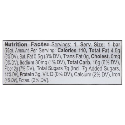 INGREDIENTS: Gluten-Free Oats, Organic Agave Nectar, Almond Butter (Almonds), Organic Brown Sugar, Crisp Brown Rice, Organic Cocoa Nibs, Molasses, Organic Crisp Quinoa, Organic Bananas, Natural Flavors, Organic Green Tea Caffeine, Organic Cinnamon, Himalayan Pink Salt, Organic Ginger.