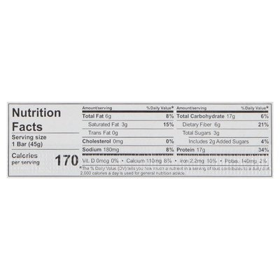 PRODUCT DETAILS: 17 g protein; 3 g sugar. Certified gluten free. gfco.org. No maltitol. No artificial sweeteners. Contains no palm oil. G1 labs tested. Real dark chocolate. nugonutrition.com. Facebook. Instagram. Twitter. Pinterest. (at)NuGoNutrition. Made in USA.